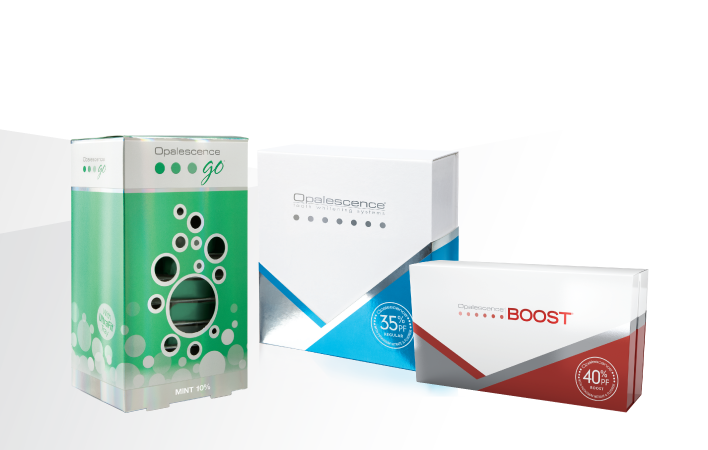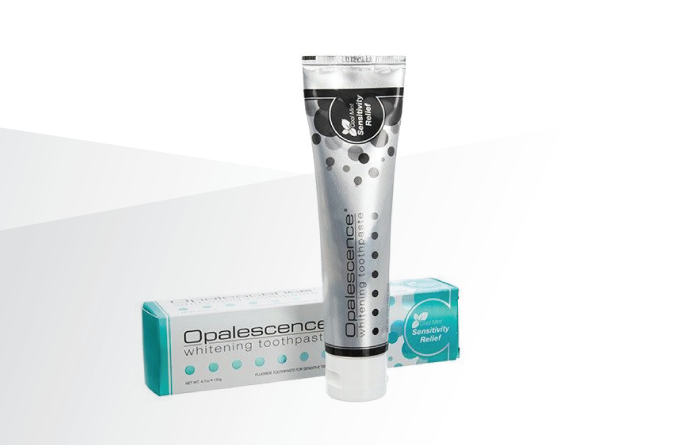 4. Además de remover alimentos y bebidas que puedan causar sensibilidad, los odontólogos deben recomendar al paciente cepillarse los dientes con la crema dental Opalescence® de Ultradent para dientes sensibles (Sensitivity Relief) la cual contiene nitrato de potasio y flúor y presenta un alto nivel de liberación de flúor, lo que ayuda a reducir la sensibilidad- para esas mismas dos semanas anteriores al inicio del blanqueamiento.